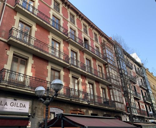 The building is located in the Abando neighborhood of Bilbao, in one of the city's main dining areas. Ledesma street is parallel to Bilbao's Gran Vía.